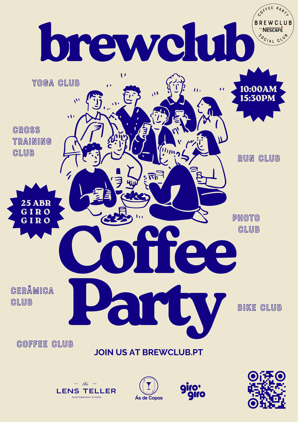 Oferecemos um conjunto de actividades de grupo: Yoga, Cerâmica, Crossfit, Corrida, Bicicleta, Workshop de Café, e Passeio Fotográfico; realizadas durante um conjunto de eventos ao estilo Coffee Party com Dj set, em locais icónicos de Lisboa, reunindo música, cultura, arte, pessoas, movimento, para afirmar um modo de estar mais consciente, onde o propósito és tu.